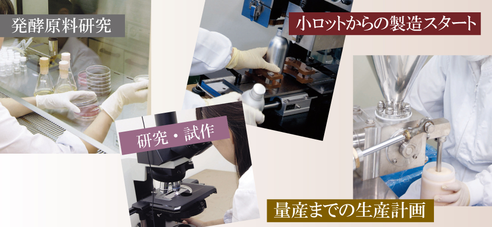 発酵研究会社とのタイアップにより、他にはない安全で肌に馴染みやすく特別な発酵原料を提供しております。